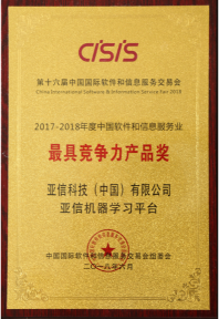 2018年6月亚信机器学习平台荣获“2017-2018年度中国软件和信息服务业最具竞争力产品奖”